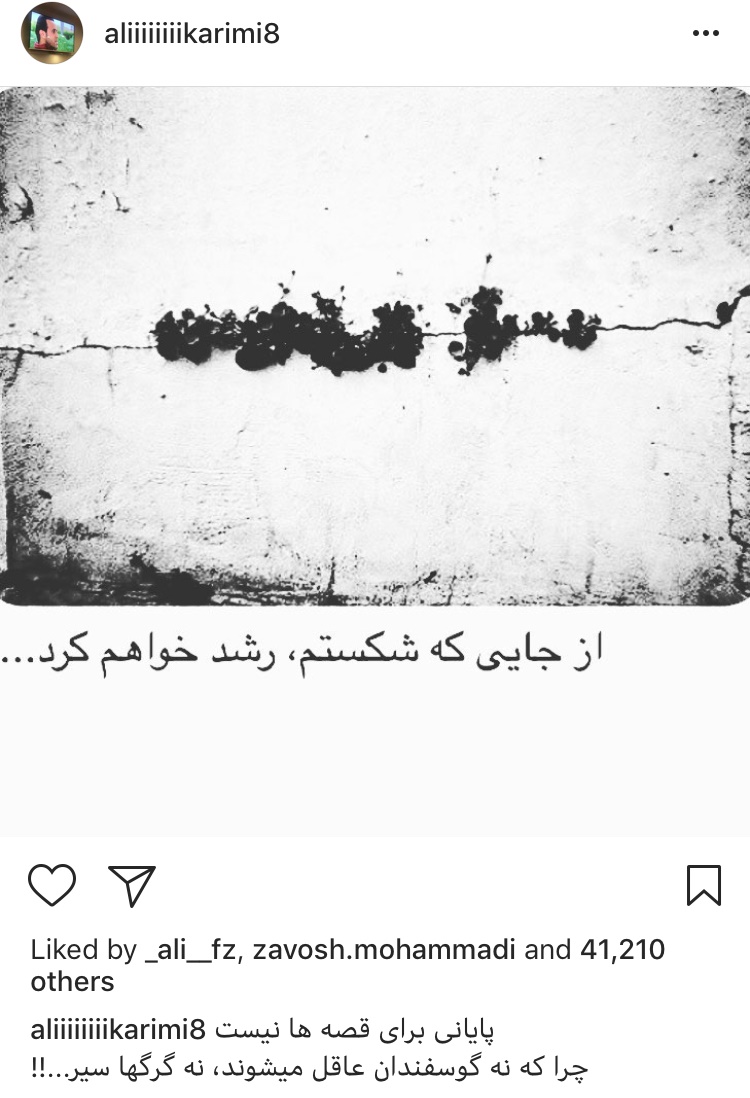 پست جدید و کنایه‌آمیز علی کریمی + عکس