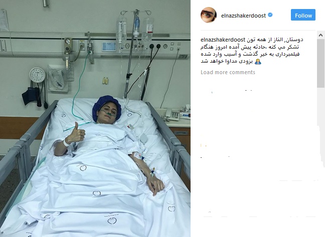 به نقل از این بازیگر، در این صفحه اینستاگرامی آمده است: «دوستان، الناز از همه تون تشکر می‌کنه، حادثه پیش آمده امروز هنگام فیلمبردارى به‌خیر گذشت و آسیب وارد شده به‌زودى مداوا خواهد شد.»