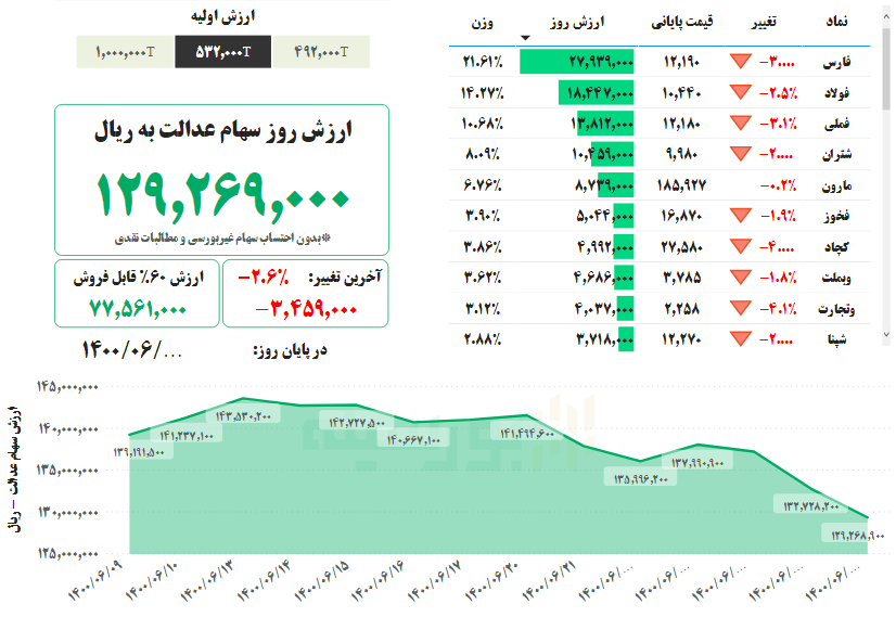 ارزش سهام عدالت، ۲.۶درصد کاهش یافت.