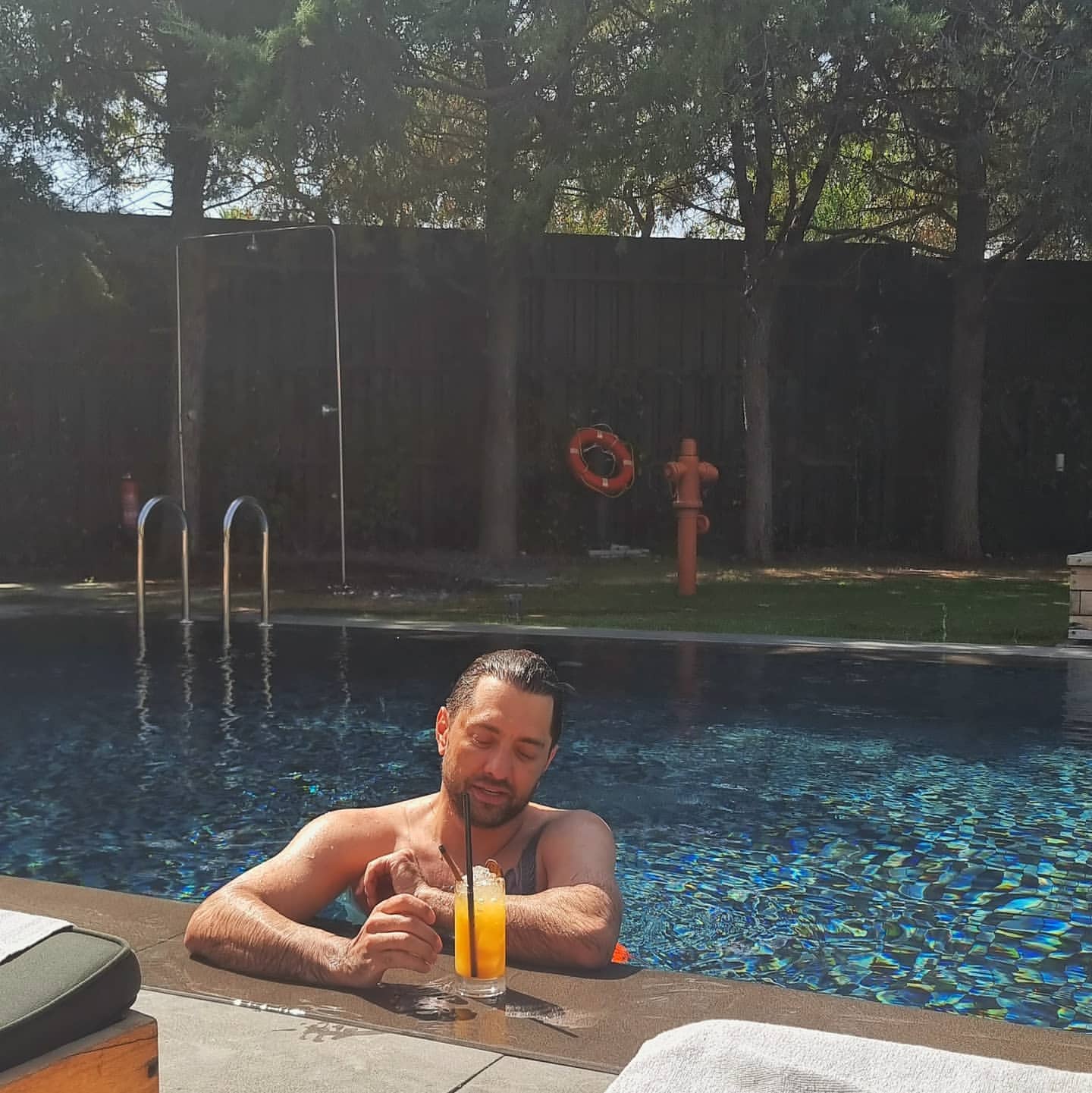 بهرام رادان در صفحه رسمی اینستاگرامش عکسی از خودش در حال خوردن نوشیدنی خنک و خوشگذرانی اش در استخر منتشر کرد.