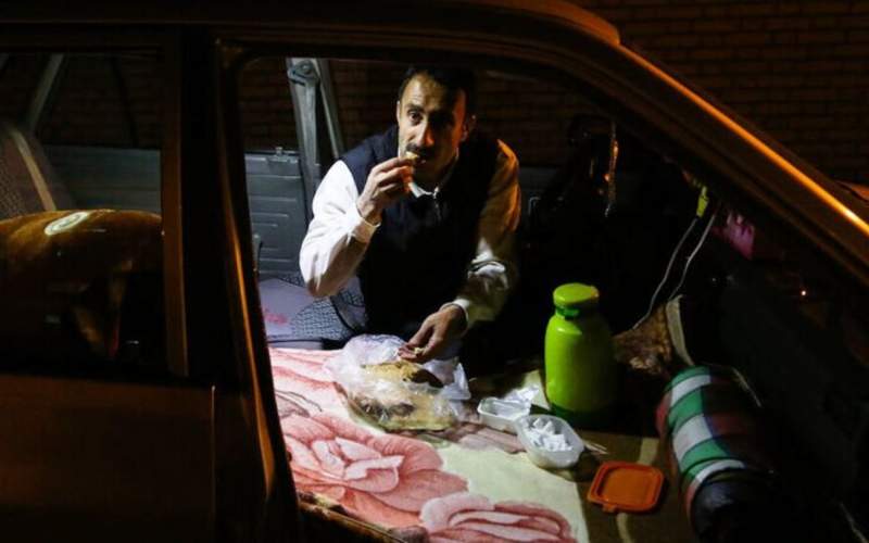 ساعت از ۱۱ شب گذشته است و تعدادی خودرو جنب میدان شهران توقف کردهاند. از پلاک هایشان مشخص است که اهل تهران نیستند. یکی از همین افراد مشغول درآوردن پتو و بالشت از داخل صندوق عقب خودرو است و کاملا پیداست که شب را در ماشین میخوابد. نزدیک تر میشوم و با او ارتباط میگیرم. از او در باره علت حضورش در تهران و خوابیدن در خودرو میپرسم و او در جواب میگوید: «مثل خیلیهای دیگه که از شهرستان اومدن، روزها مسافر کشی میکنم و شبها توی ماشین میخوابم» او که فردی ۵۰ ساله است و ظاهری شکسته دارد در ادامه میگوید: «در طول ماه چیزی حدود ۲۰روز تهرانم و ۱۰ روز برمیگردم شهرمون. از کاشون میام. بالاخره شرایط اقتصادیه دیگه، وضع منم این نبود که الان میبینی.برای خودم کار داشتم اما خب دیگه بد روزگار همینه» او در جواب این سوال که در تهران چقدر درامد دارید گفت: «تقریبا روزی ۶۰۰ تومن در میارم اگه بدون استراحت کار کنم و شبها دیگه جون ندارم حتی حرف بزنم» او برای حمام، به حمام نمره میرود و غذا را شبها طوری میپزد که برای صبح هم بماند. غذا را با پیک نیکی در گوشه خیابان میپزد.