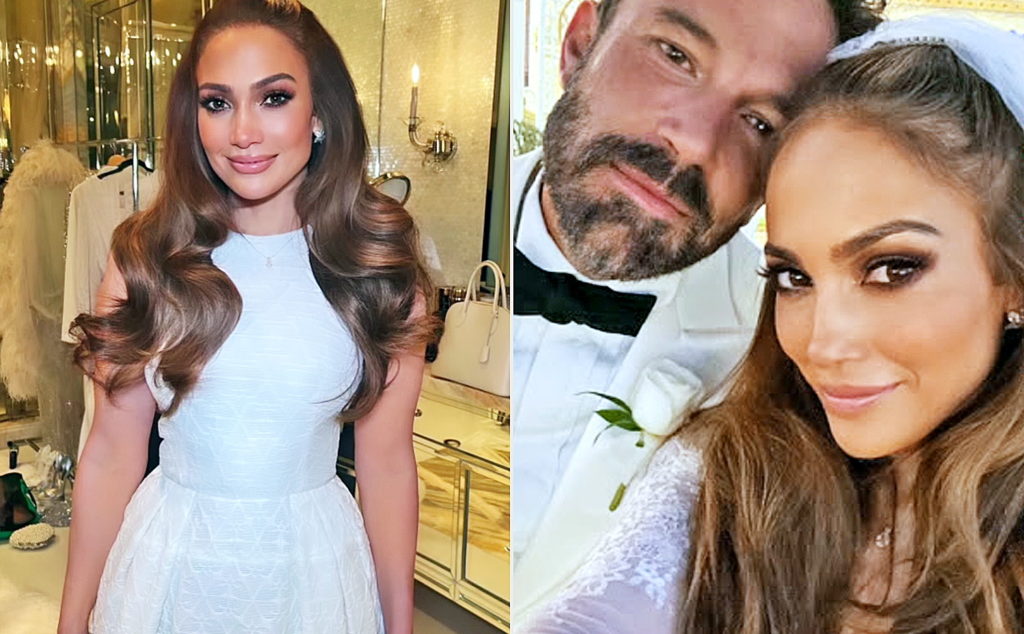 مدل مو و لباس خاص جنیفر لوپز در روز عروسی اش با بن افلک + عکس