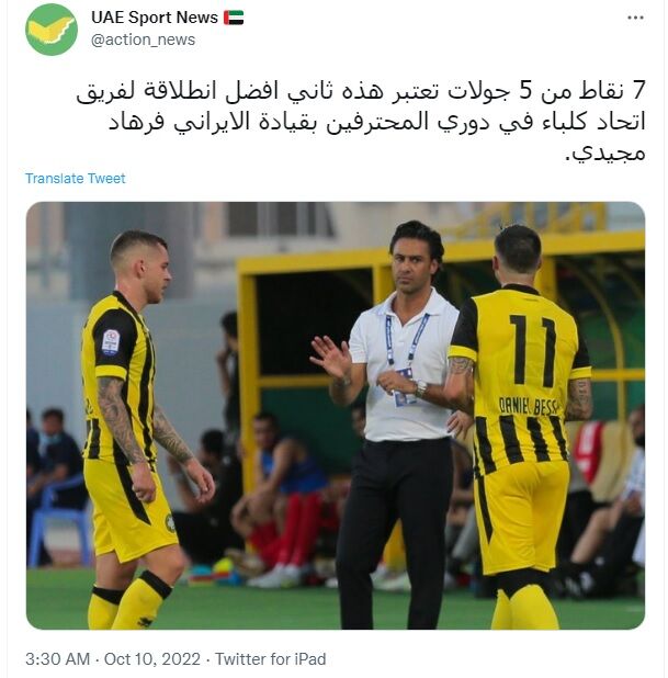 فرهاد مجیدی بعد از قهرمانی با استقلال در لیگ ایران در فصل گذشته راهی امارات شد و هدایت تیم گمنام اتحاد کلباء را برعهده گرفت.