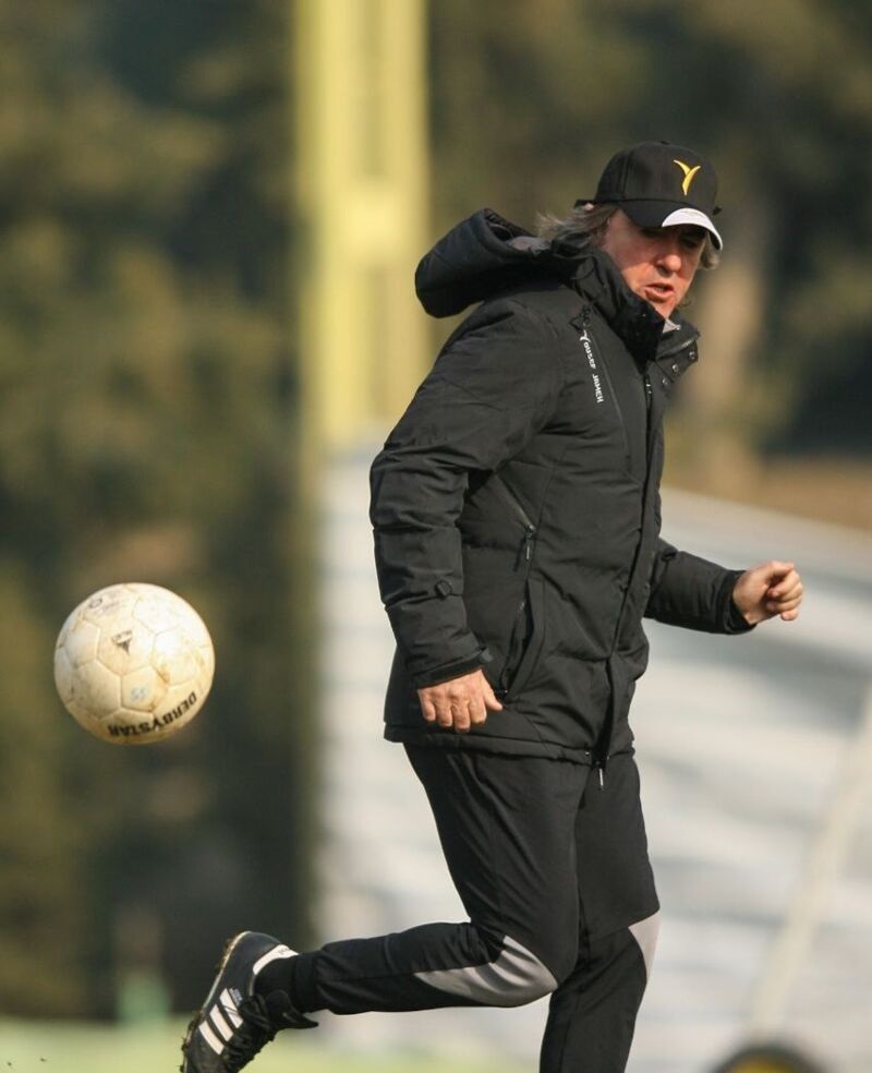 ساپینتو در یک صحنه که به شدت حال هوای فوتبال در وجودش موج می زد با یک حرکت پشت پای تکنیکی فیگور خاصی را برای عکاس باشگاه و بازیکنانش گرفت و با پشت استوک مشکی رنگش توپ را برای شاگردانش ارسال کرد.