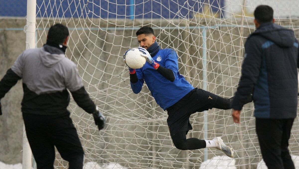 کاپیتان اول تیم استقلال با حضور در محل تمرین با وجود سرمای شدید بارها واکنشهای تماشایی ضربات بهزاد غلامپور را مهار کرد.