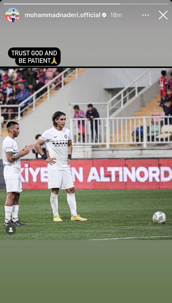 نادری امروز یک استوری با تصویری از خودش در لباس آلتای اسپور را در صفحه شخصی خود منتشر کرد و نوشت: «به خدا اعتماد کن و صبور باش» باید دید که در نهایت این بازیکن برای فصل جدید راهی چه تیمی خواهد شد.