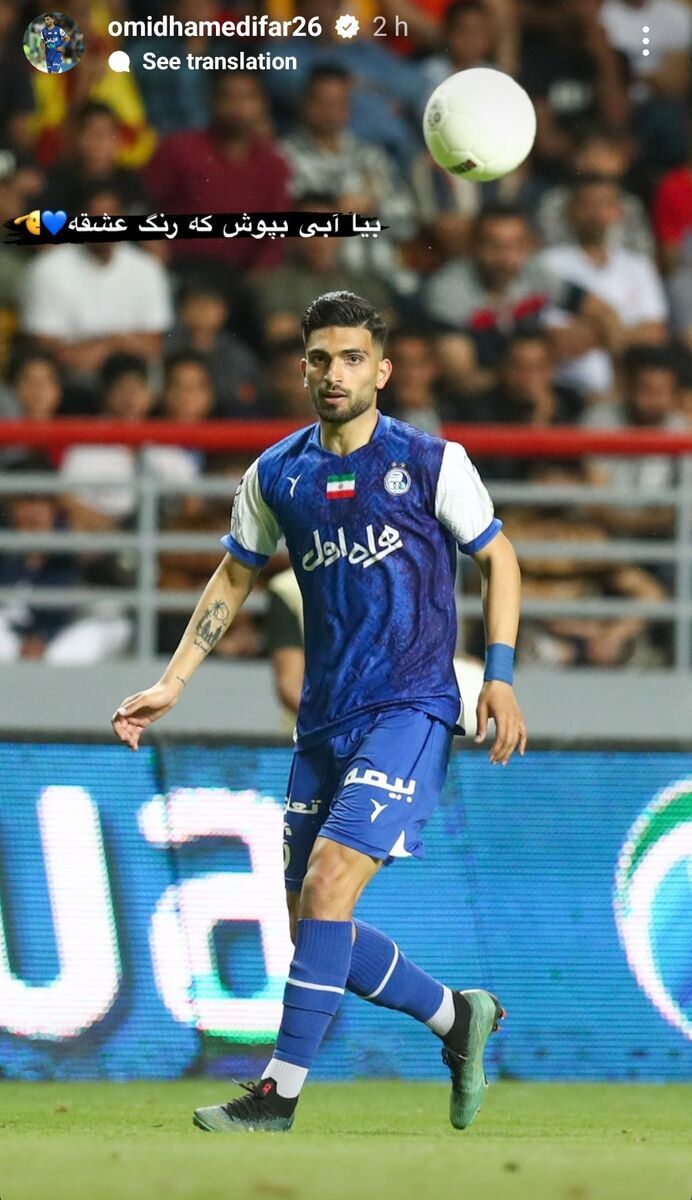 حامدیفر با انتشار تصویری از خودش با پیراهن استقلال به همراه یک پیام در صفحه شخصی اینستاگرامش نوشت: بیا آبی بپوش که رنگ عشقه...