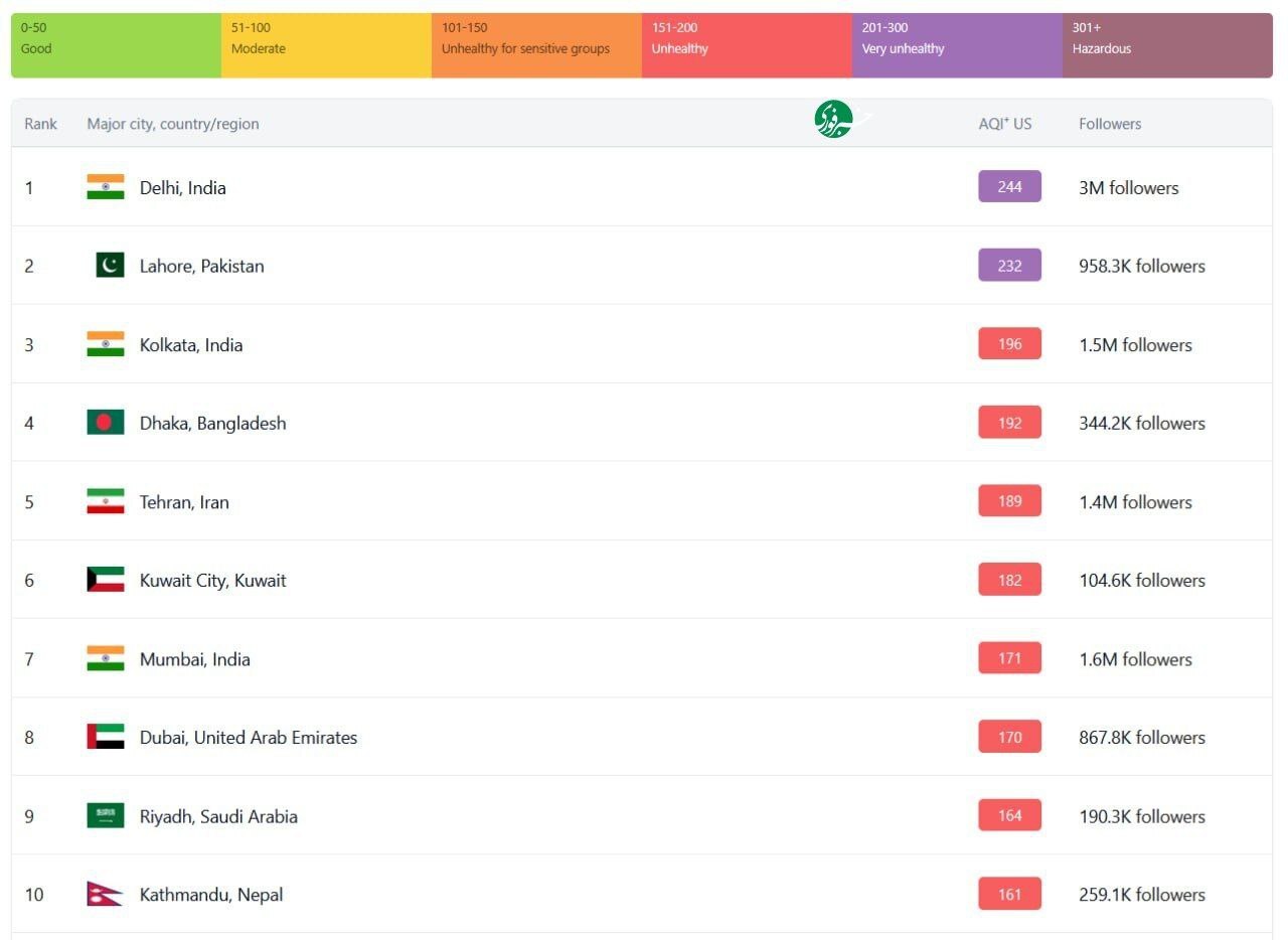 تهران رتبه پنجم آلوده‌ترین شهر‌های جهان