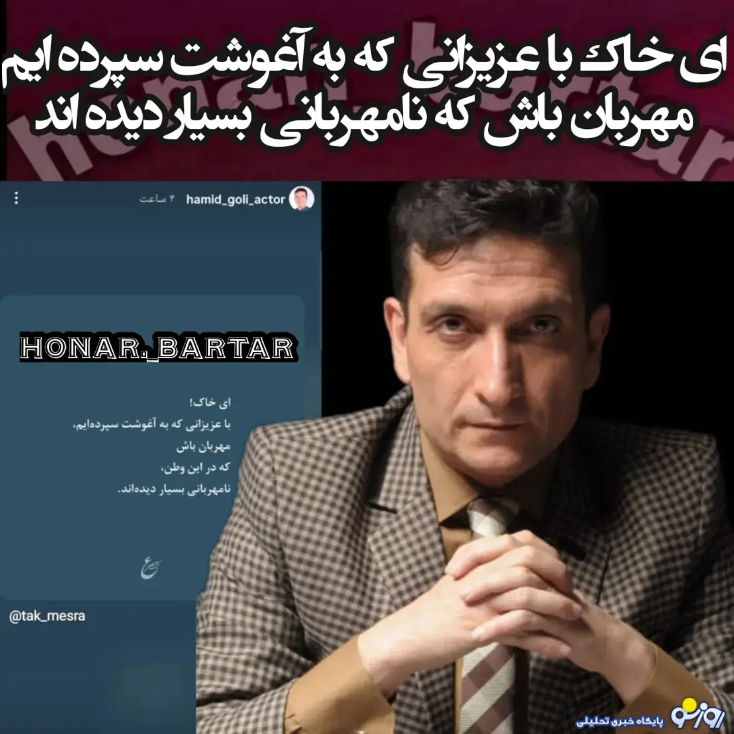 به گزارش روز نو حمید گلی در اینستاگرام نوشت:ای خاک با عزیزانی که به آغوشت سپردهایم مهربان باش که در این وطن نامهربانی بسیار دیدهاند.