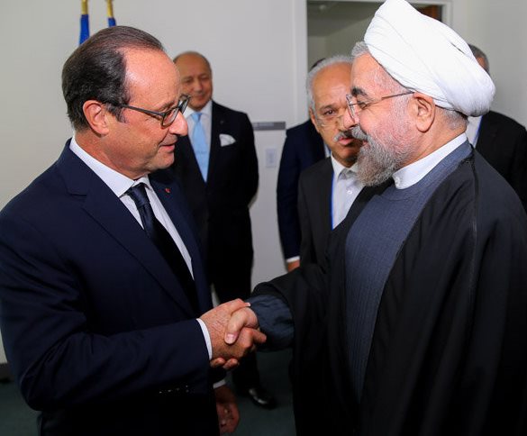 رییس جمهوری فرانسه نیز در این دیدار که در مقر سازمان ملل متحد برگزار شد، با بیان اینکه مذاکرات ۱+۵ با ایران باید هر چه سریعتر به توافق نهایی برسد، گفت: این توافق میتواند روابط فی مابین را در سایه اعتماد به سطحی بالاتر از گذشته برساند.